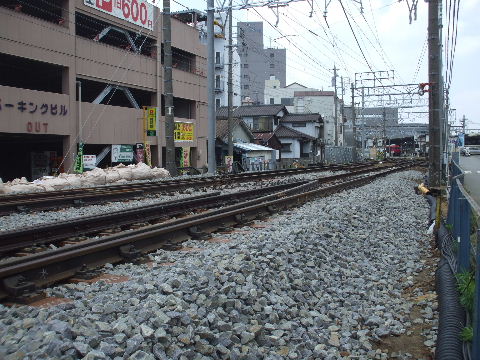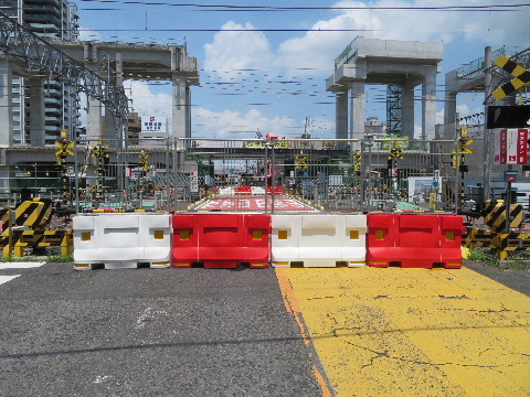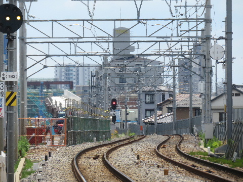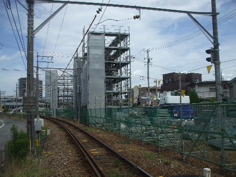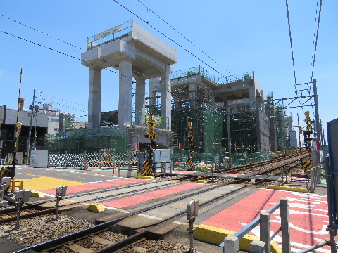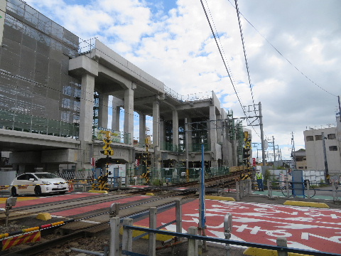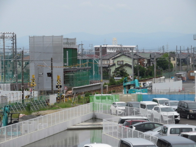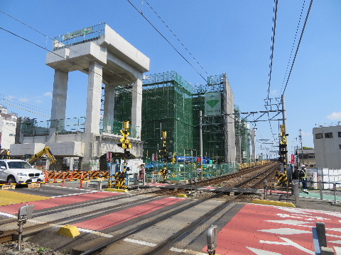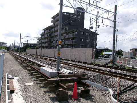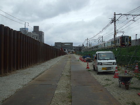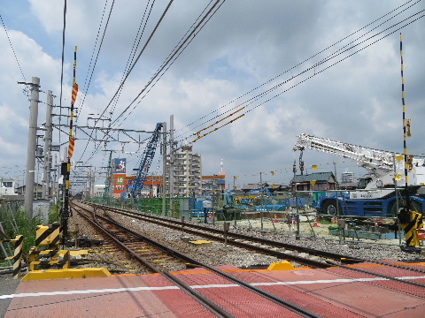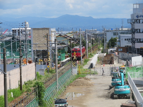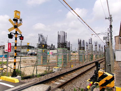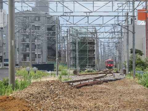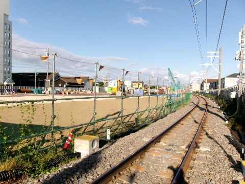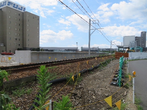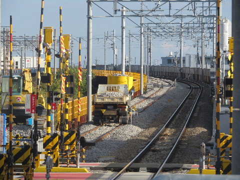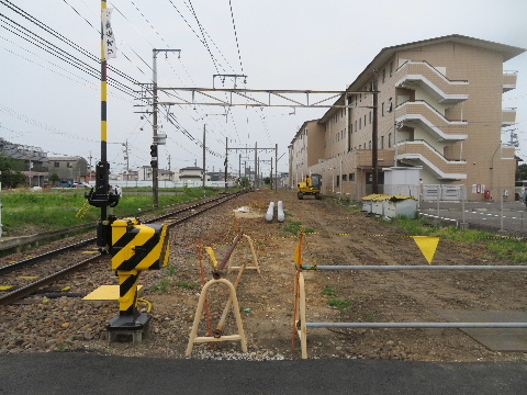 | 2018年06月17日。駅北の踏切から見ると仮線を敷くかと思われた