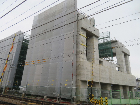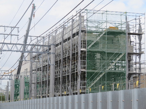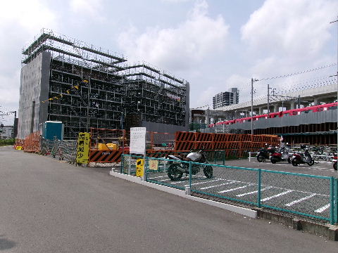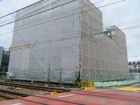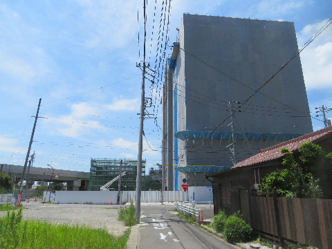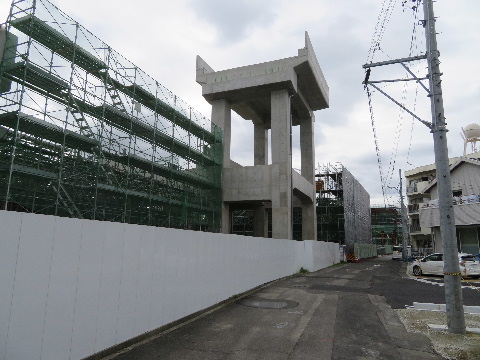 | 2018年06月17日。駅側、外観が見えてきた。 | 2018年06月17日。裏の駐車場棟も出来てき た。 |