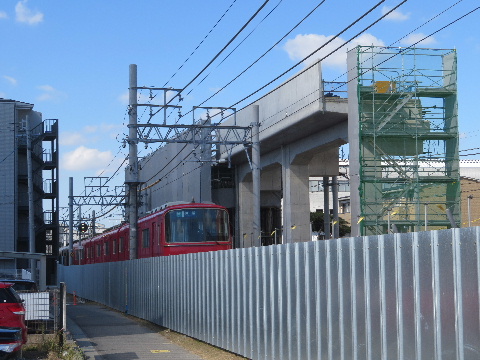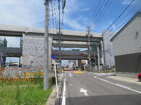 | 2019年01月13日。さらに名古屋方向へ高架橋が伸びていく。 | 2019年06月23日。少し名古屋方向へ延びた。その先でも工事が始 まっている。 |