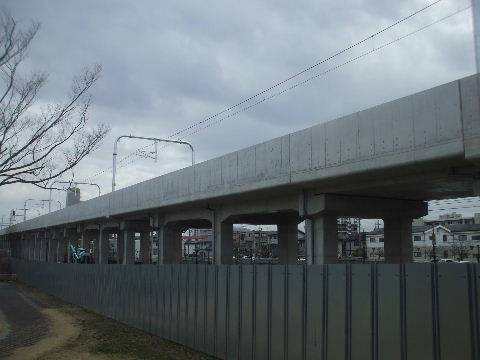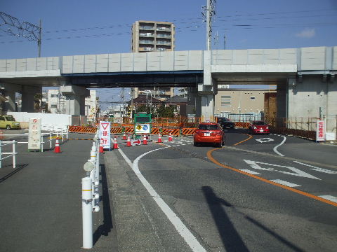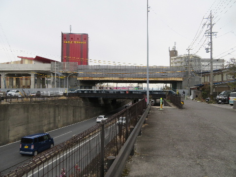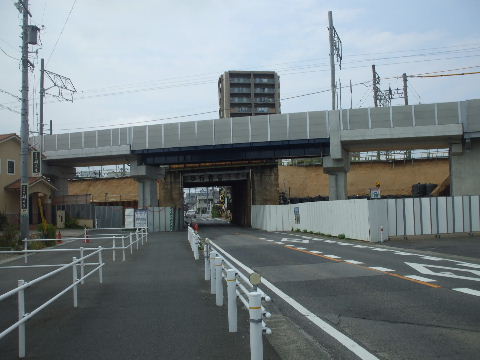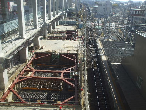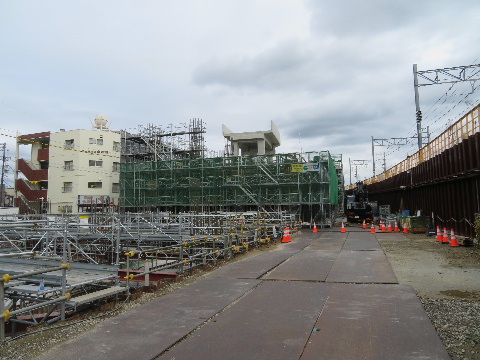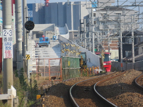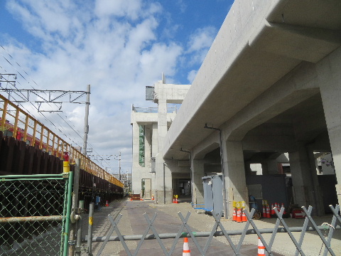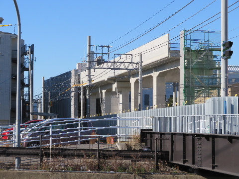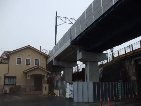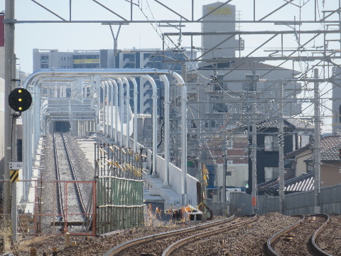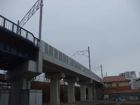 2019年12月15日。狭いところの高架橋工事大体できたようだ。これ で豊橋方面線の仮線への移動工事が始められる。 |