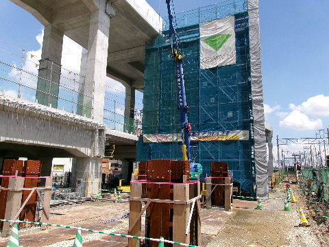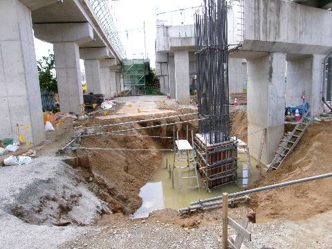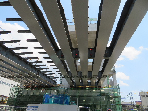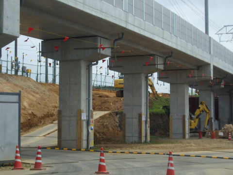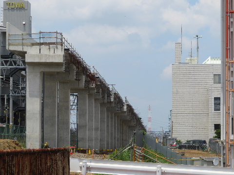 2018年06月17日。高架橋の橋脚が3っつほど立ちあがり始めてい