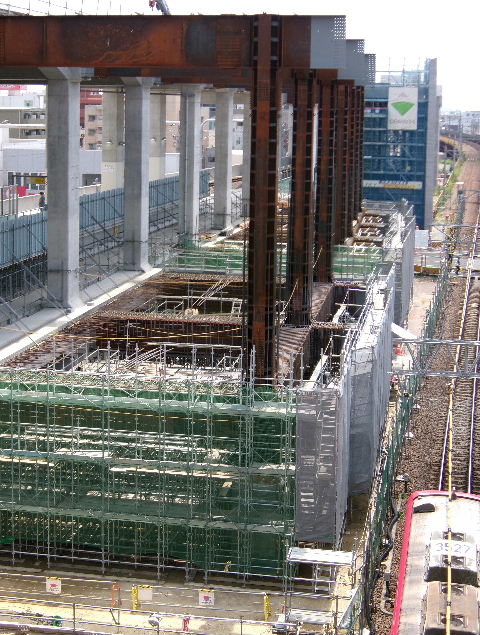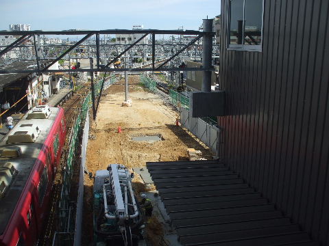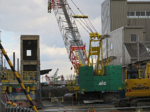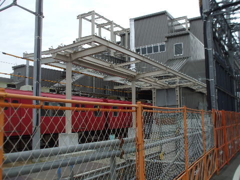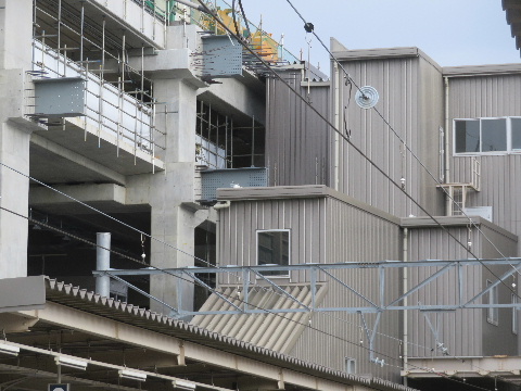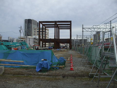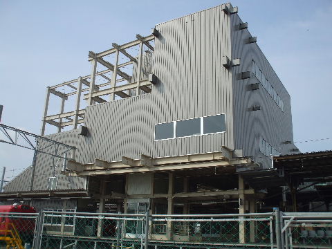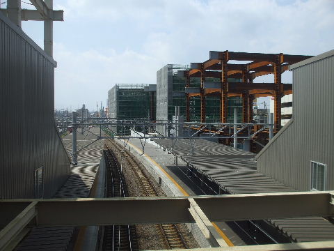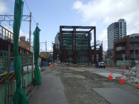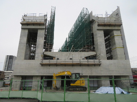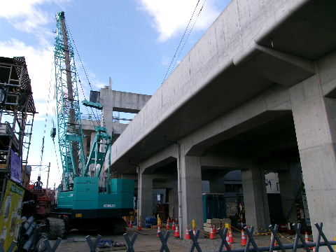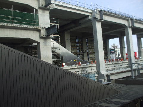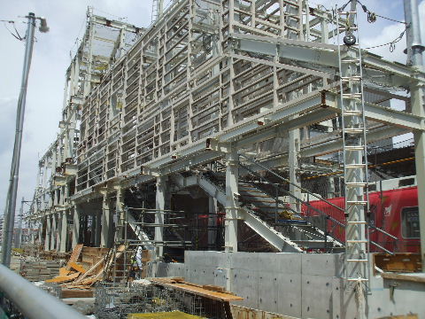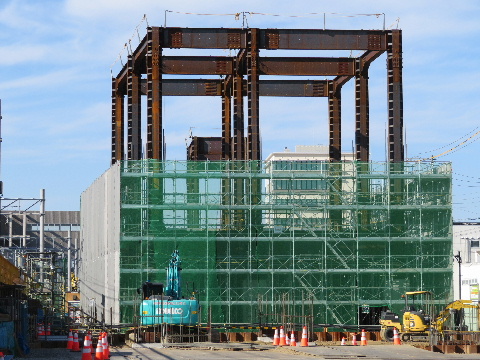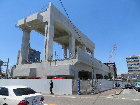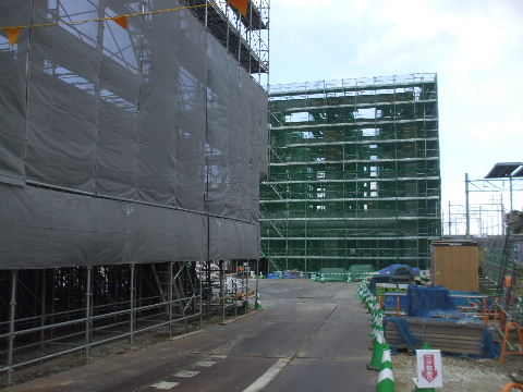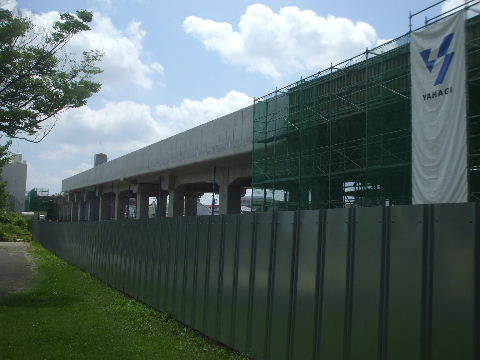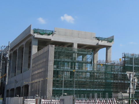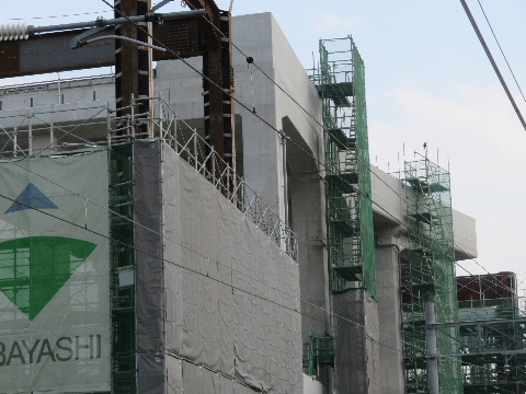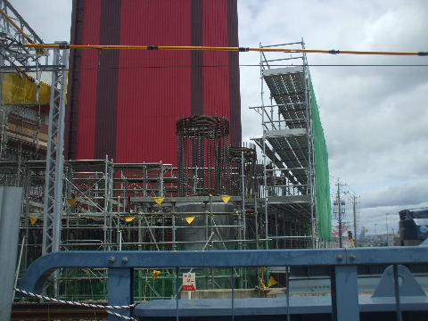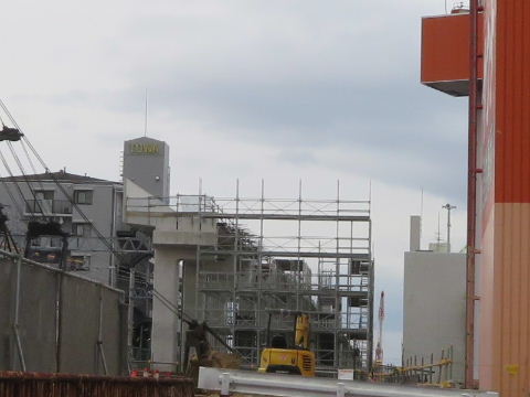 | 2012年5月31日。組み立て途中みたいにあちこち鉄骨が飛び出ているがこの工事は終わったようで西側にあった工事事務所も方付けられている。 | 201 年 月 日。 |