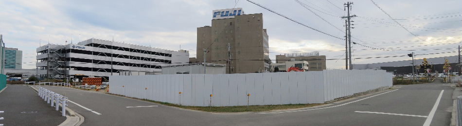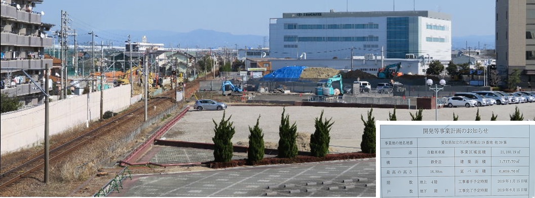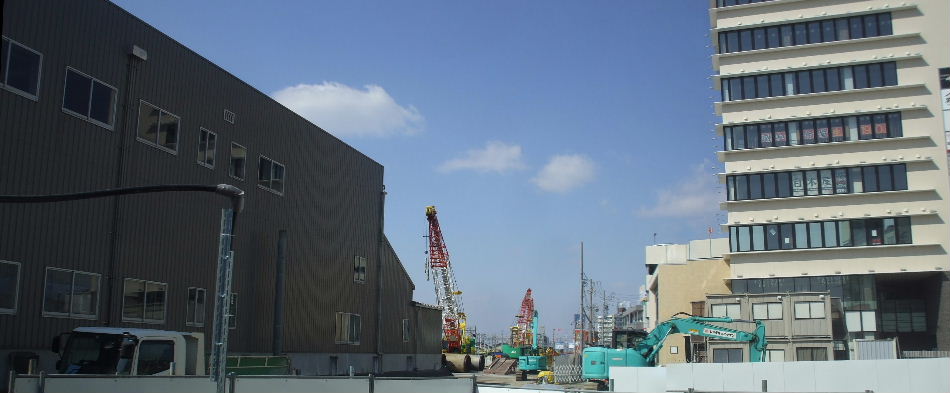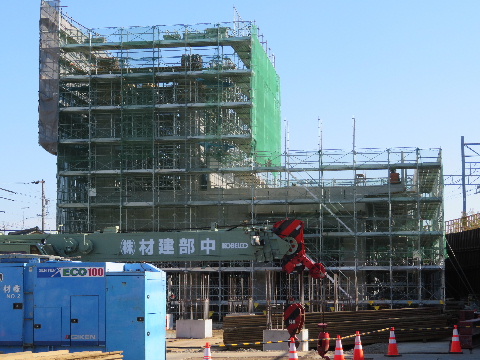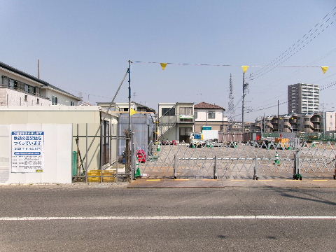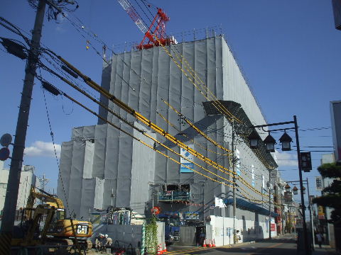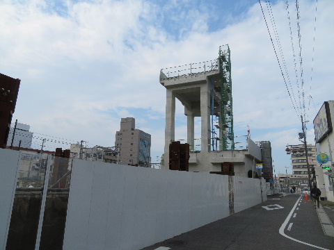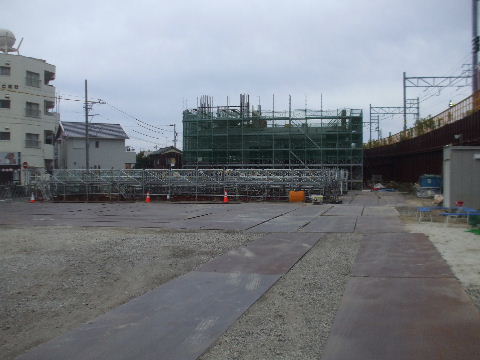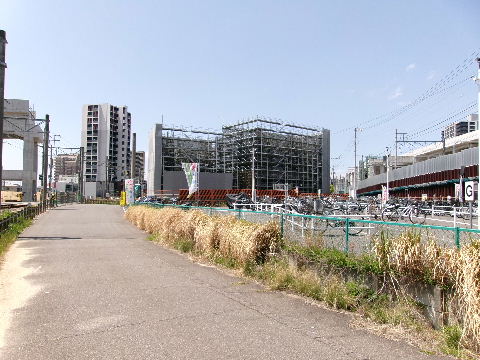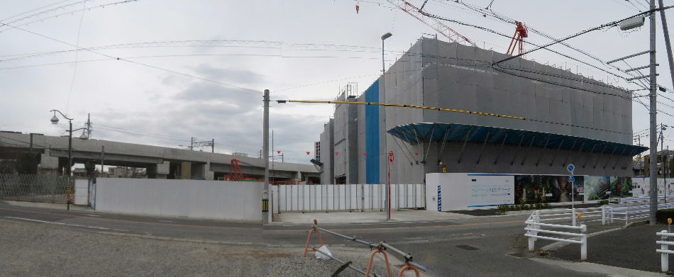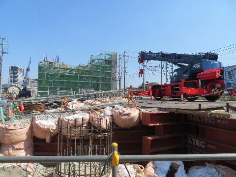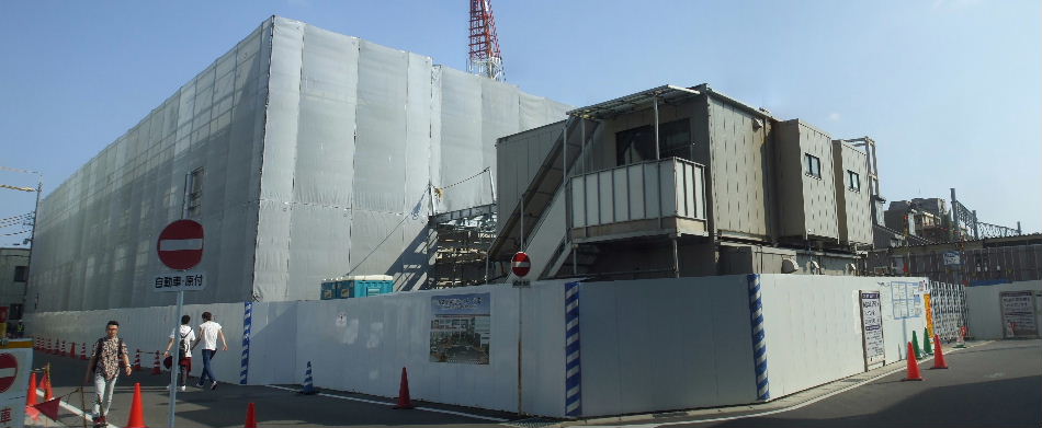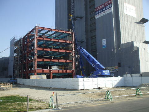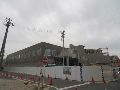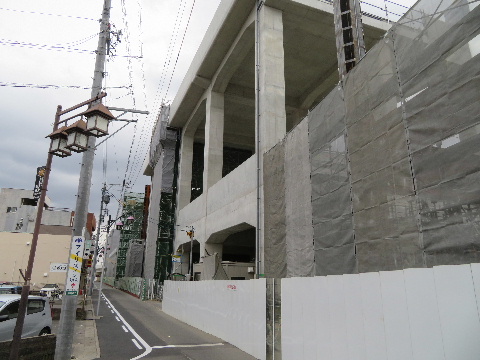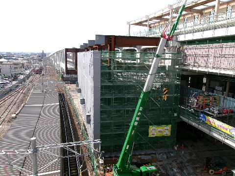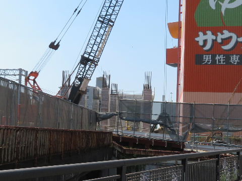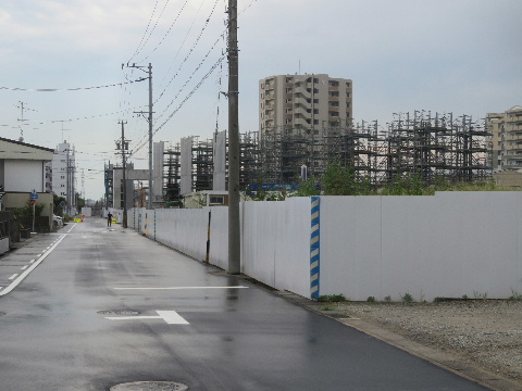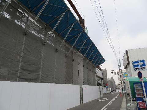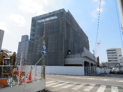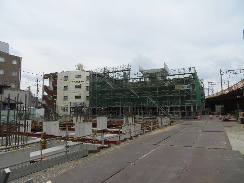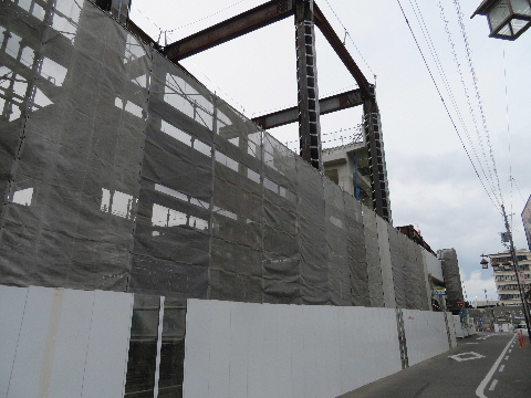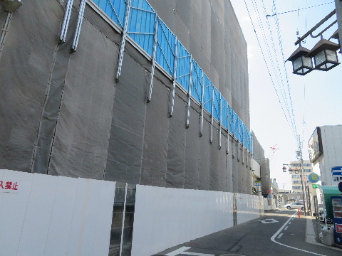 | 2018年03月30日。 | 2018年03月30日。裏側には駐車場と店舗の入る6階建ての鉄骨を 組み立て中。 |