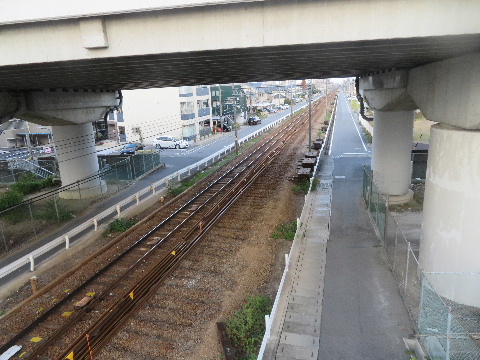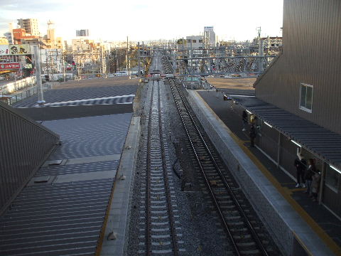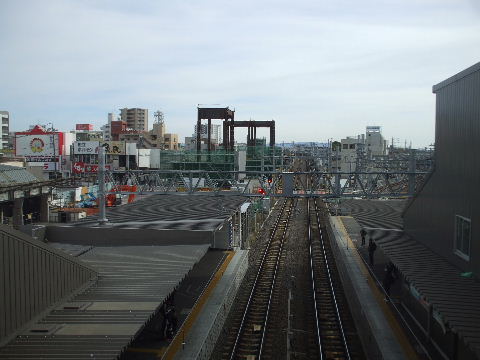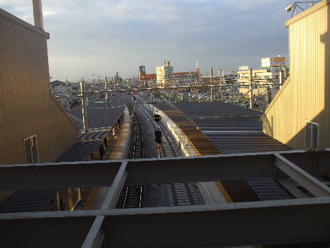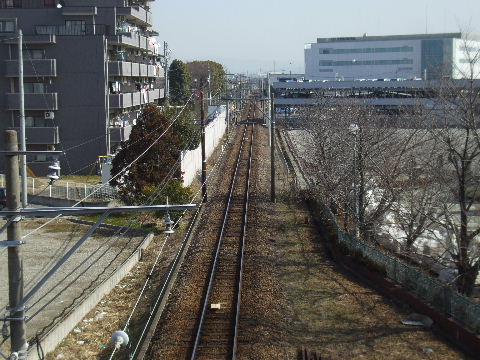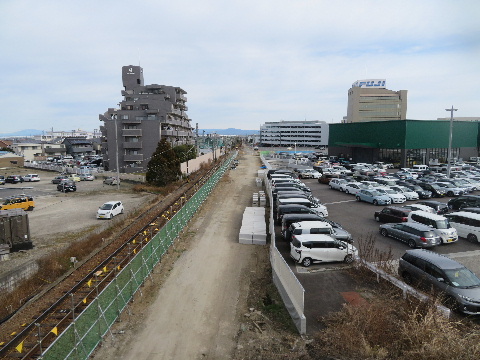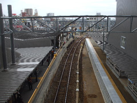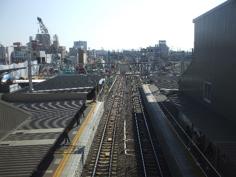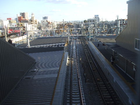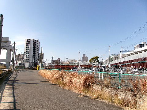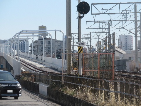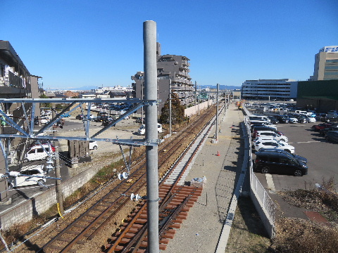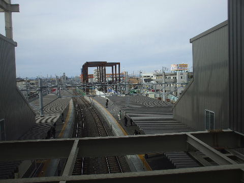 | 2019年02月17日。逆に駅方向を見る。近々なくなる跨線橋階段部 分が見える。 |