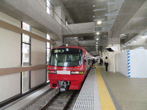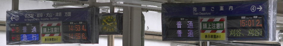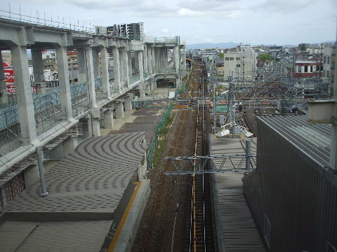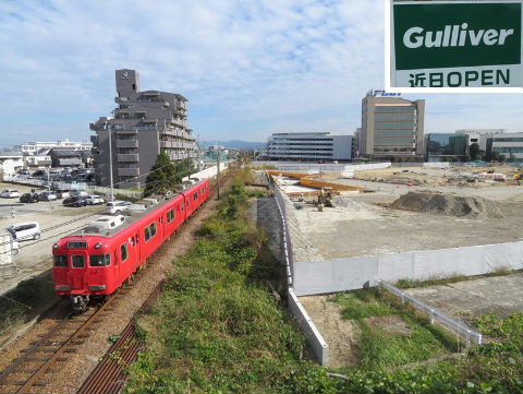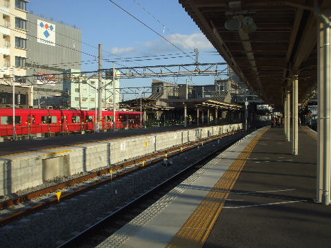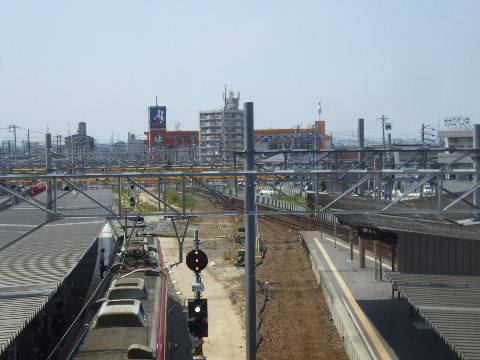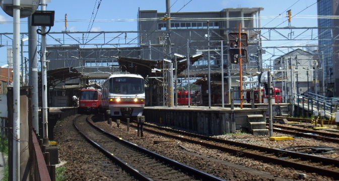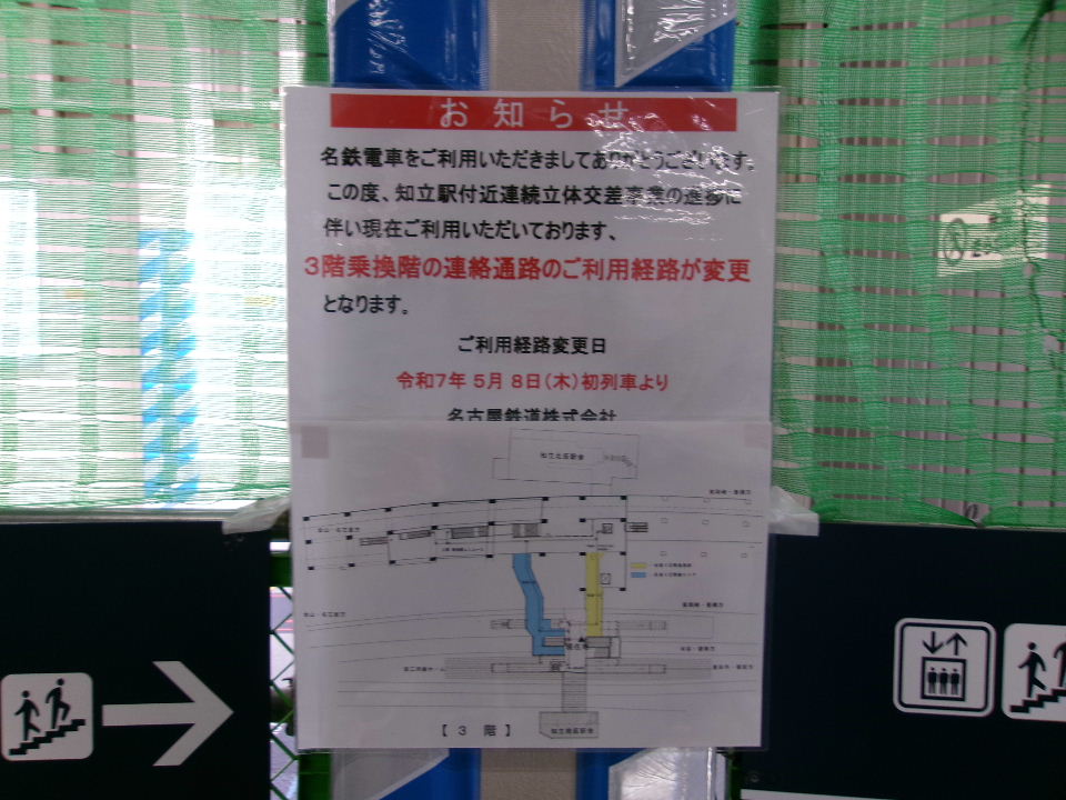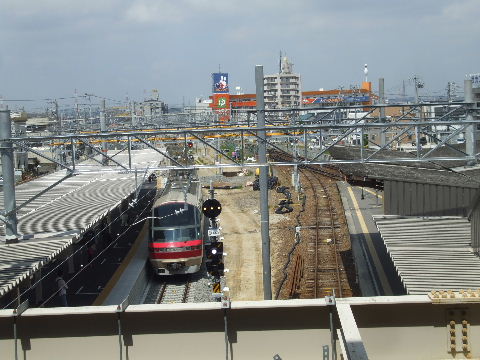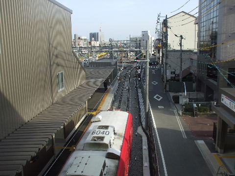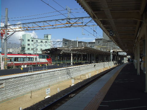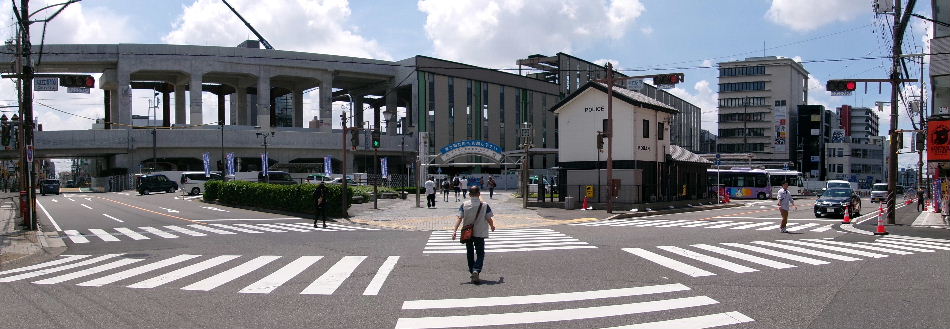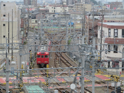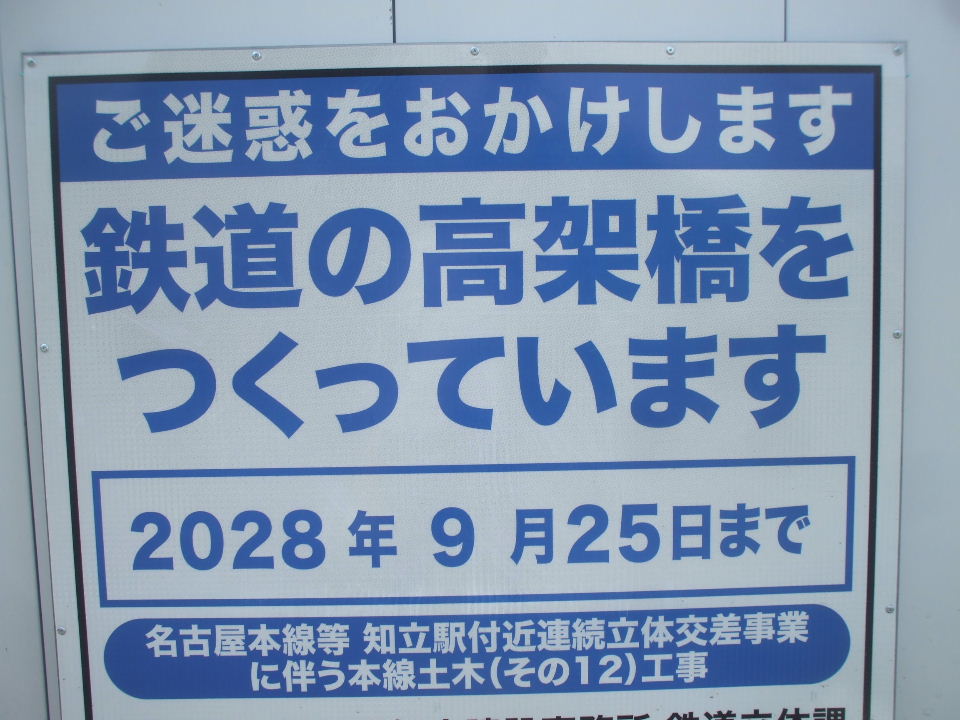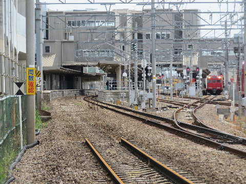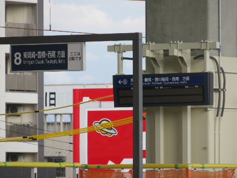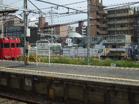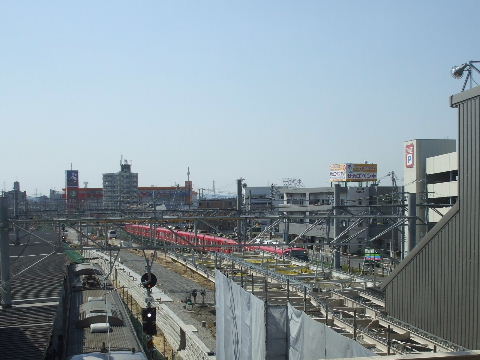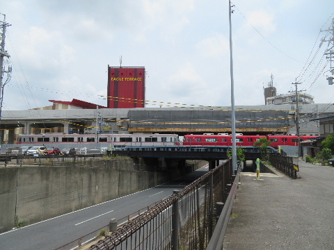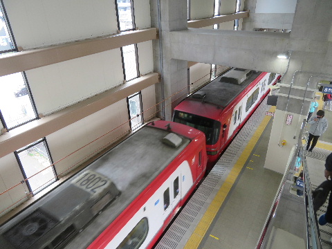 仮線工事が始まっている名鉄知立駅の高架化工事を見物します。駅施設が1階、名古屋本線ホームが2階で2面4線、三河線ホームが3階で2面4線という構造になるようです。 |