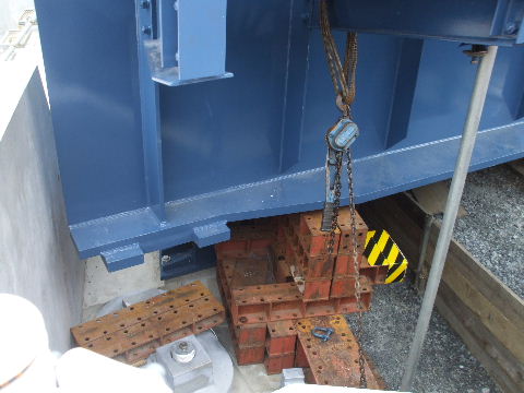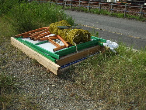 | 2024年05月26日。保線車両留置線敷設中。 | 2024年05月26日。定位置で仮支え中で宙に 浮いているよう。横のスペースは資材置き場に なるのか。 |