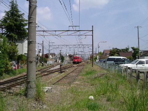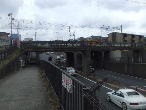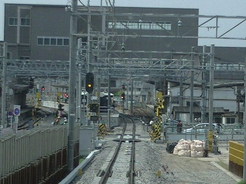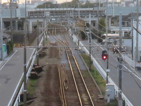 2021年05月30日。155号線から。この少し奥で3階の三河線に 入る線が分岐するので2本脚の1線幅から横に3本並んだ2線 幅に広がっている。 |
