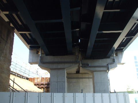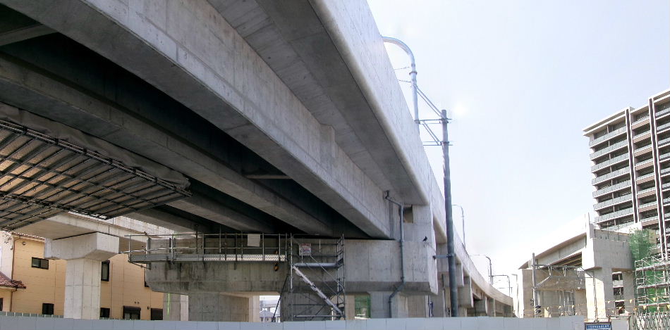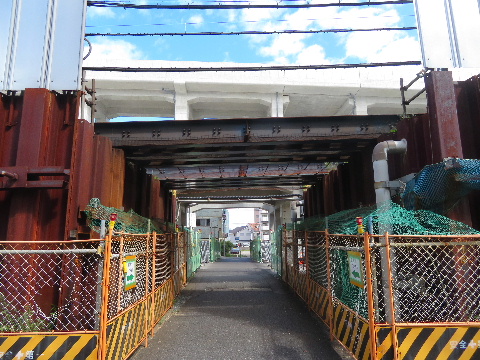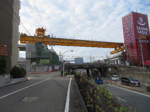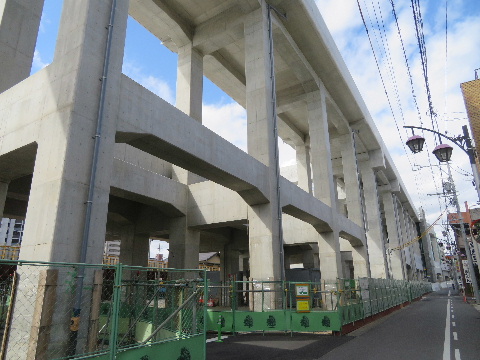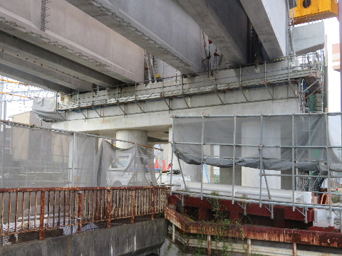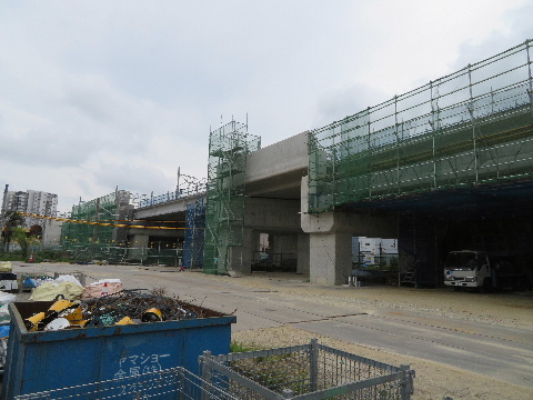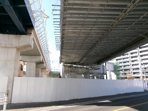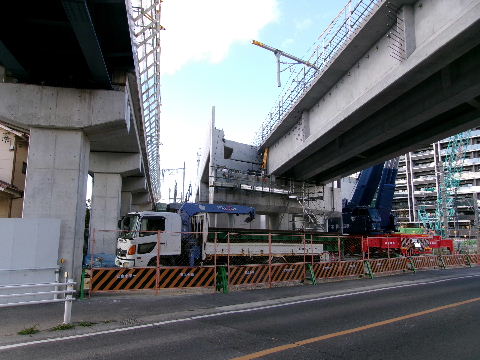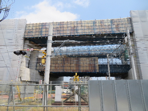 | 2018年10月28日。草刈公園前、高架橋が橋脚5基分つながる。 |