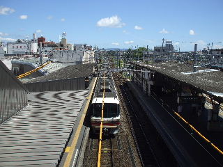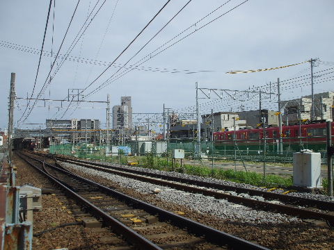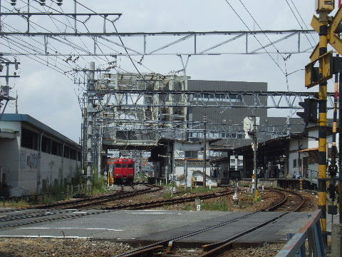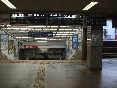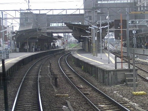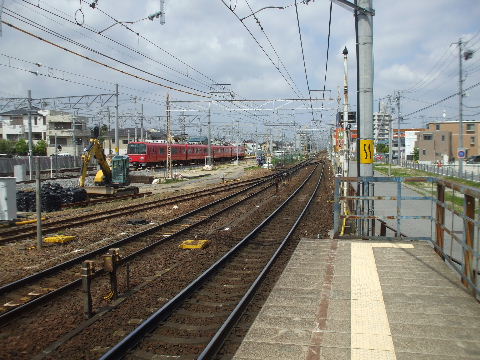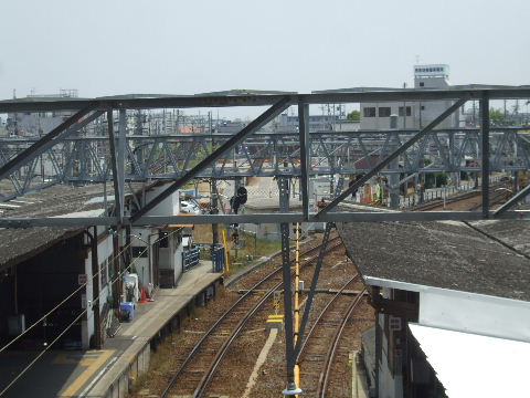 | 2011年7月11日。跨線橋から見下ろす。本線名古屋方面。鉄骨ゴツゴツ。 | 2011年7月11日。本線名古屋方面。 | 2011年7月11日。三河線。 |