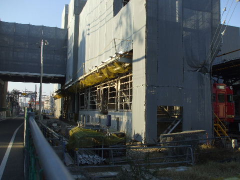 | 2020年12月13日。駅前解体中のビルを裏側から見る。残り一棟。 |