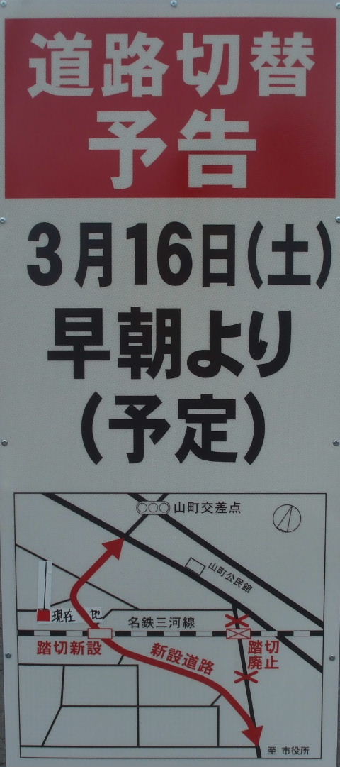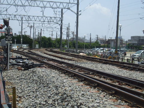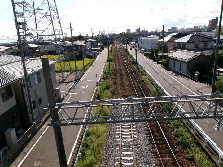 | 駅北にある踏切辺り。 | 駅南の開かずの踏切辺り。 | 駅南の本線三河線分岐点辺り。 |