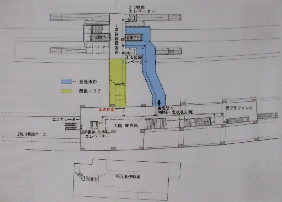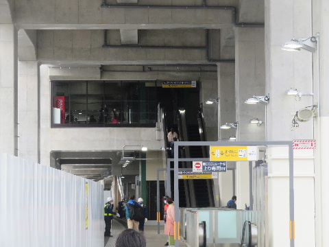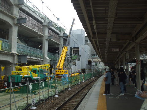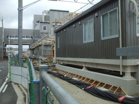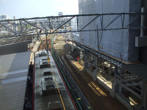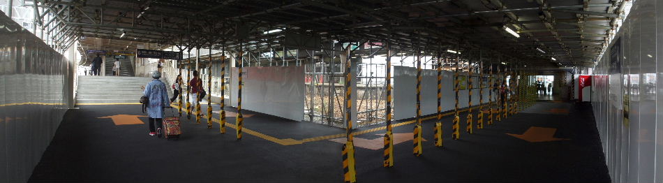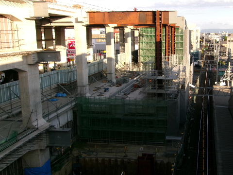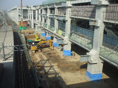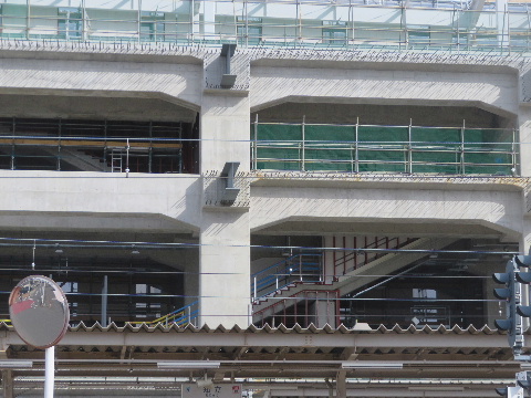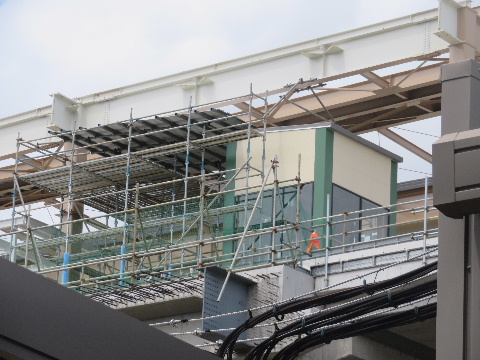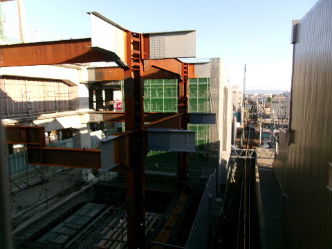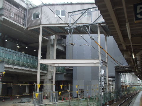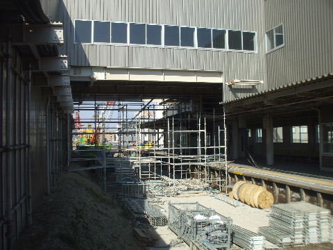 | 2011年10月23日。エレベーターしかない橋上通路に各ホーム階段建設中。 |