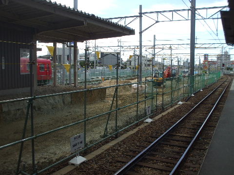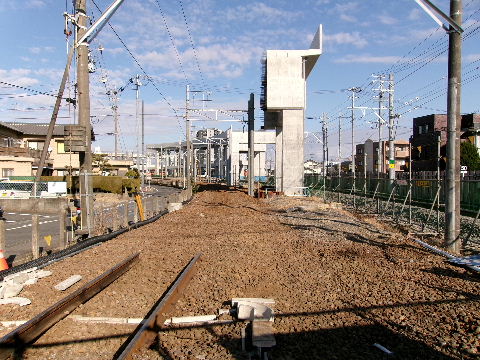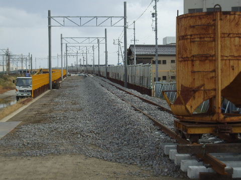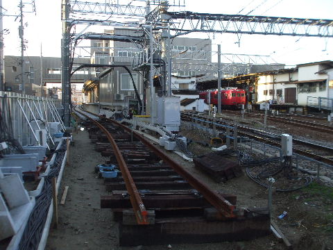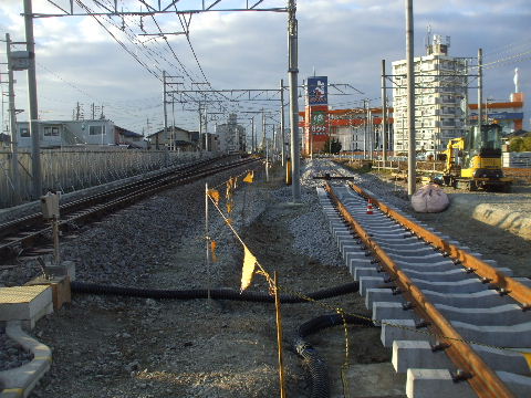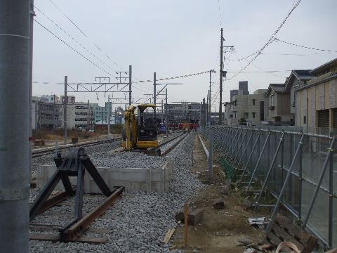 | 2010年11月13日。バラストも新しい留置線に6000系留置中 | 2011年1月3日。工事進む。 |