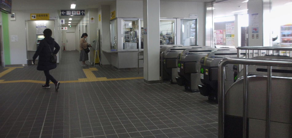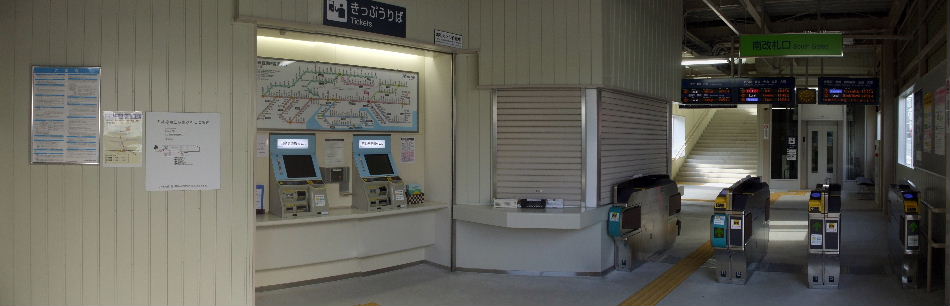 | 2024年01月14日。こんな感じ。 | 2024年01月14日。駅部、左は自動改札機、右には 券売機設置の穴。 |
