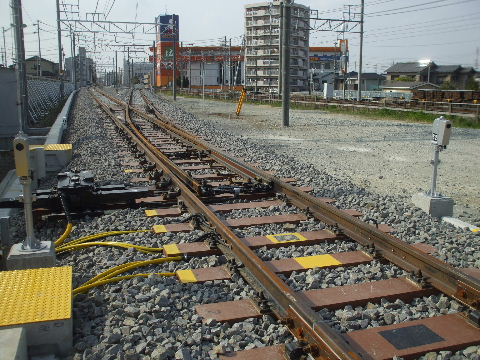 | 2024年03月16日。三河八橋方には旧線跡を使って 安全側線が設置されている。 |