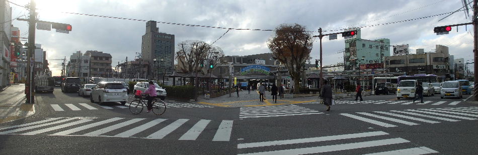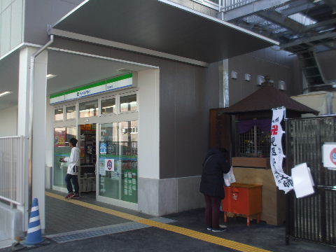 | 2017年12月09日。駅前から。 | 2018年01月13日。貼ってある看板が上へ大きくなっている分高くな ったのが判る。 |