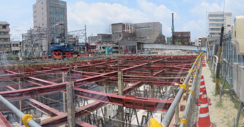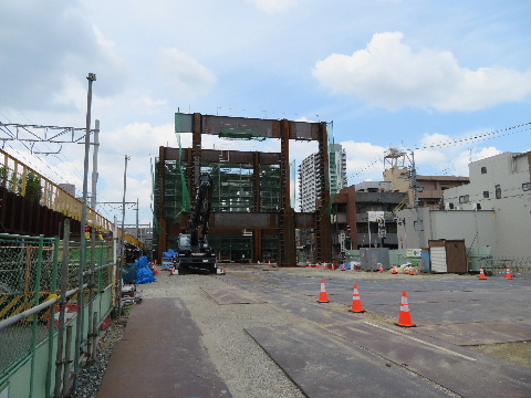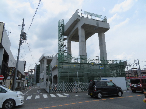 | 2017年07月22日。駅前ビル立ち上がり始めている。 | 2017年08月26日。5階位になっている。 |