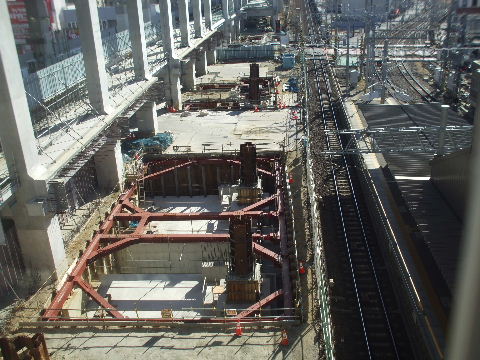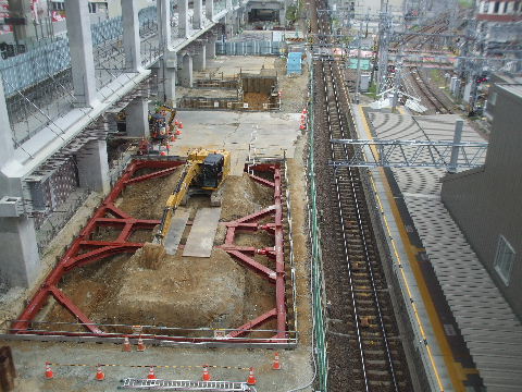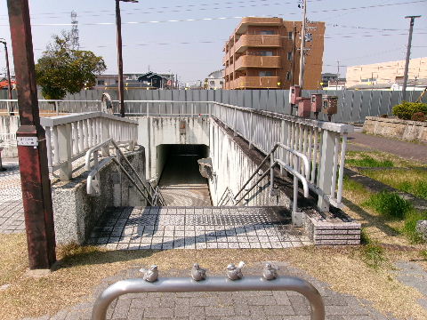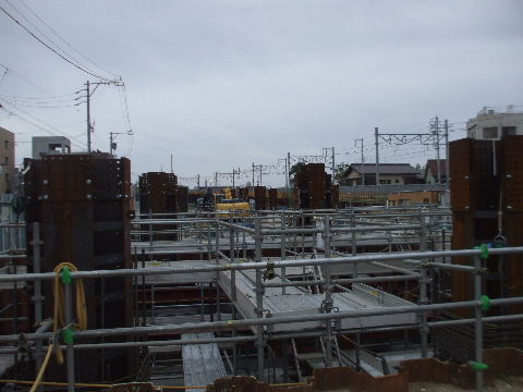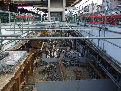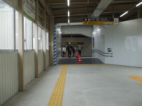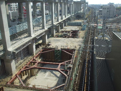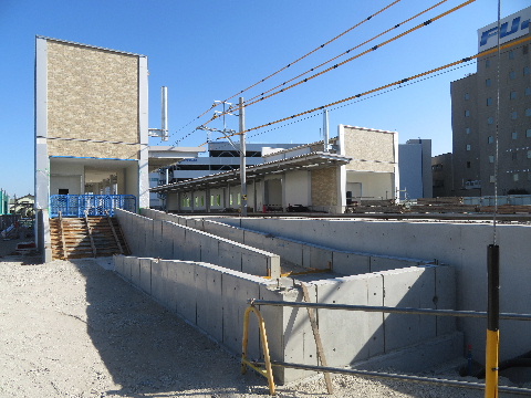 | 2011年10月23日。基礎工事中。 | 2011年10月23日。高架工事が本格化して橋上通路に移ったらこの知立名物地下通路のガチャガチャ階段は矢張り無くなるのか。 |