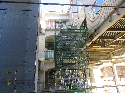 | 2024年12月15日。ピッタリ並んで隙間に空が見える。 あとは1階のエントランス等の工事中。 |