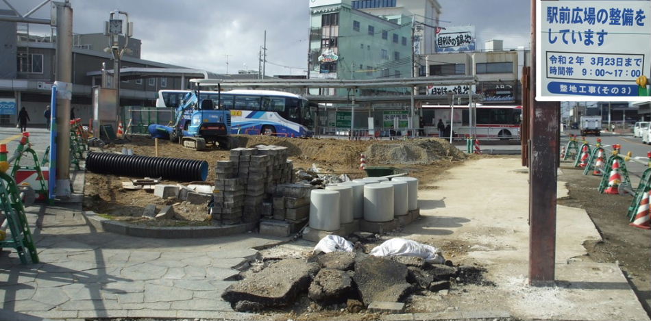 | 2024年02月18。駅前広場整備中。車の送迎路を作っている。 | |