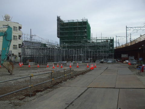 | 2023年03月05日。駅脇の居酒屋ビルの隣にもう3階建て 一棟建設中。 |