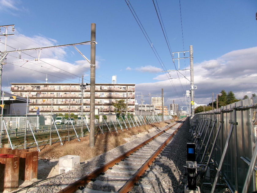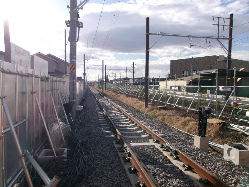 | 2017年02月12日。155号線の少し北。右にある仮線用地が少し狭 いのか上り本線を左へ移動させようとしている。 |