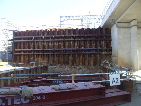 2020年08月02日。155号線側から見る。横に広げた箇所、矢板が 打ち込まれている。 |