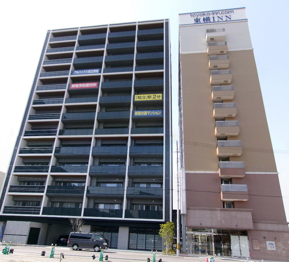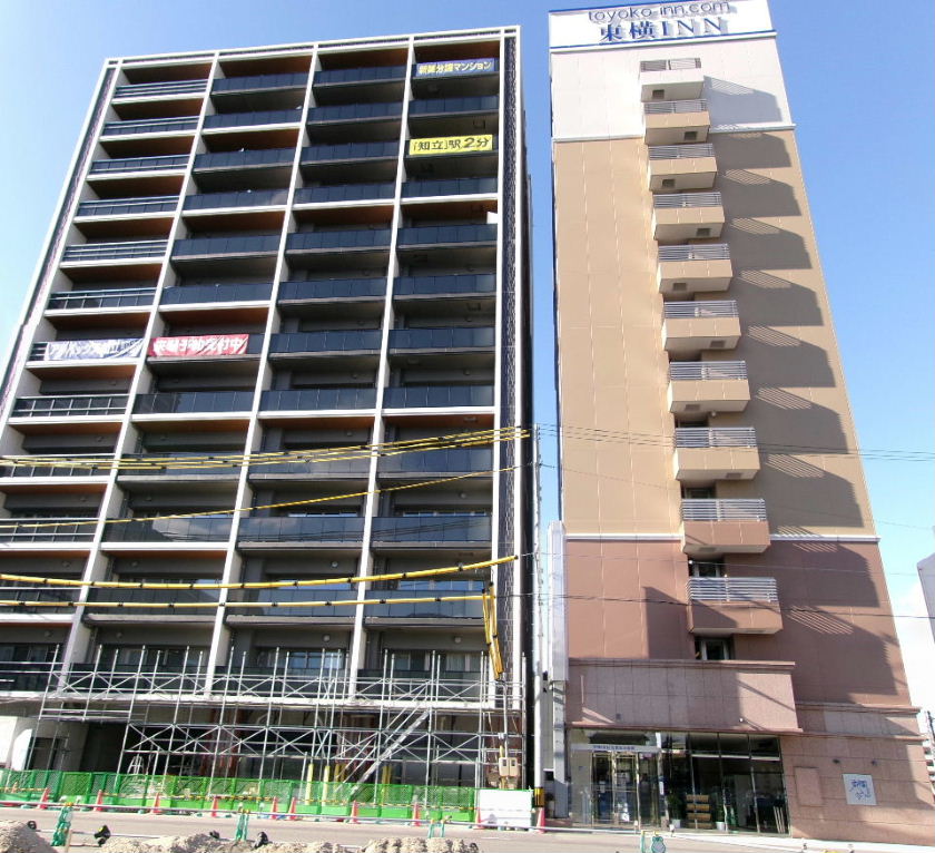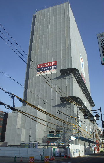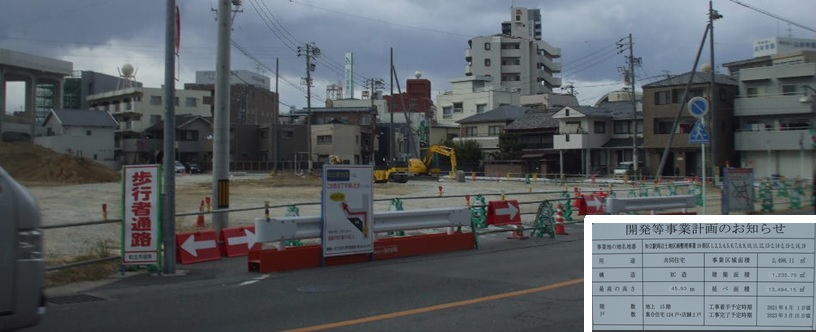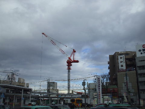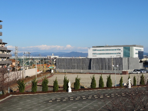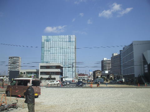 | 2024年02月18日。駅前のホテルの手前にマンション ビルが建つ。同じくらいの高さなのでホテルのこちら 側の窓からはビルの壁や窓しか見えなくなりそうだ。 |