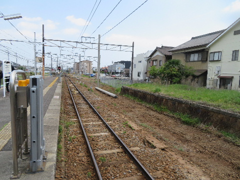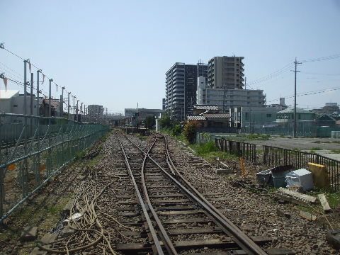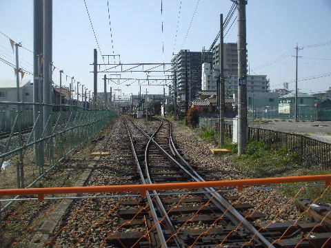 | 2018年03月30日。駅前後はまだ線路が残っている。架線は見えて いる架線柱から豊橋方切り替え地点までまだ残っている。 |