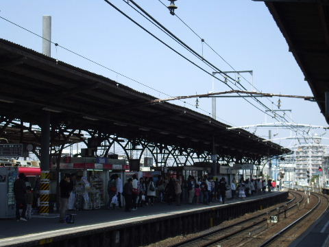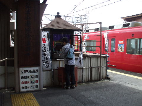 | 2009年04月26日。本線上りホーム豊橋方の三河弘法。高架工事で 撤去されそうで駅に残れるか。 |