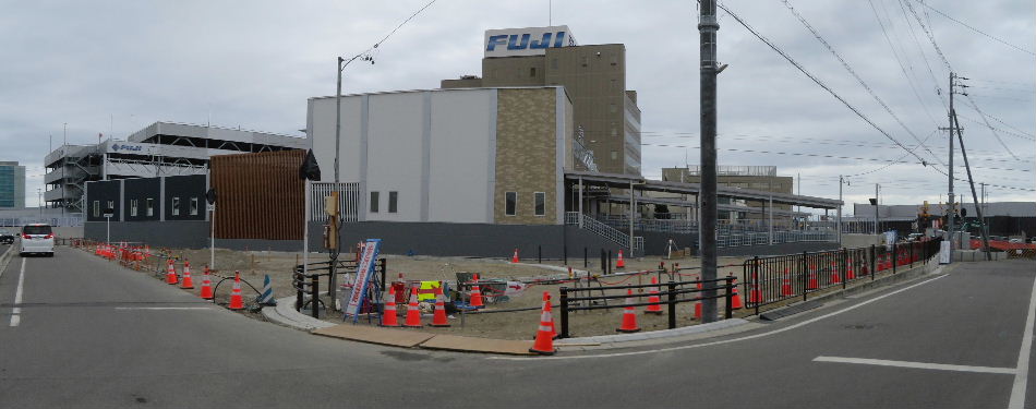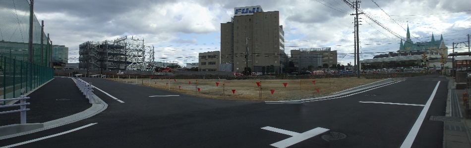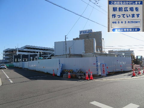 | 2024年01月14日。工事塀が無くなって駅前広場工事。 | |