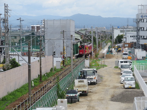 | 2019年09月15日。国道155号線の北では高架下に少し潜り込むよ うな感じに見える上り仮線工事が進んでいる。 |