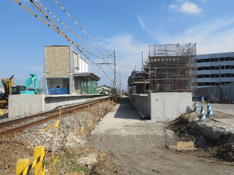 | 2018年12月02日。駅側から見る。奥の方、左側にビジネスホテル 建設中。 |