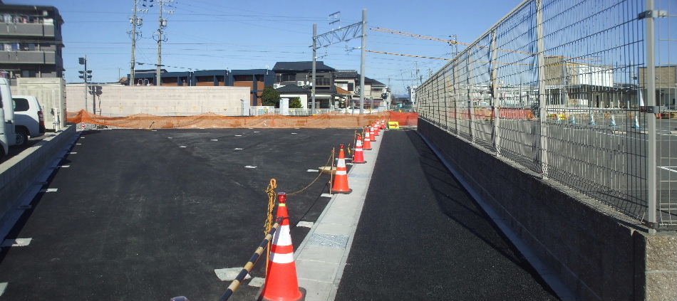 | 2024年01月14日。線路反対側の舗装。駐輪場か。 | |