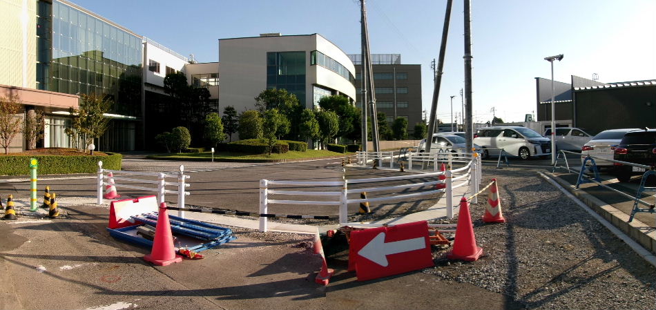 | 2024年09月23日。国道一号線からの入り道工事中。 ホームから見る。 |