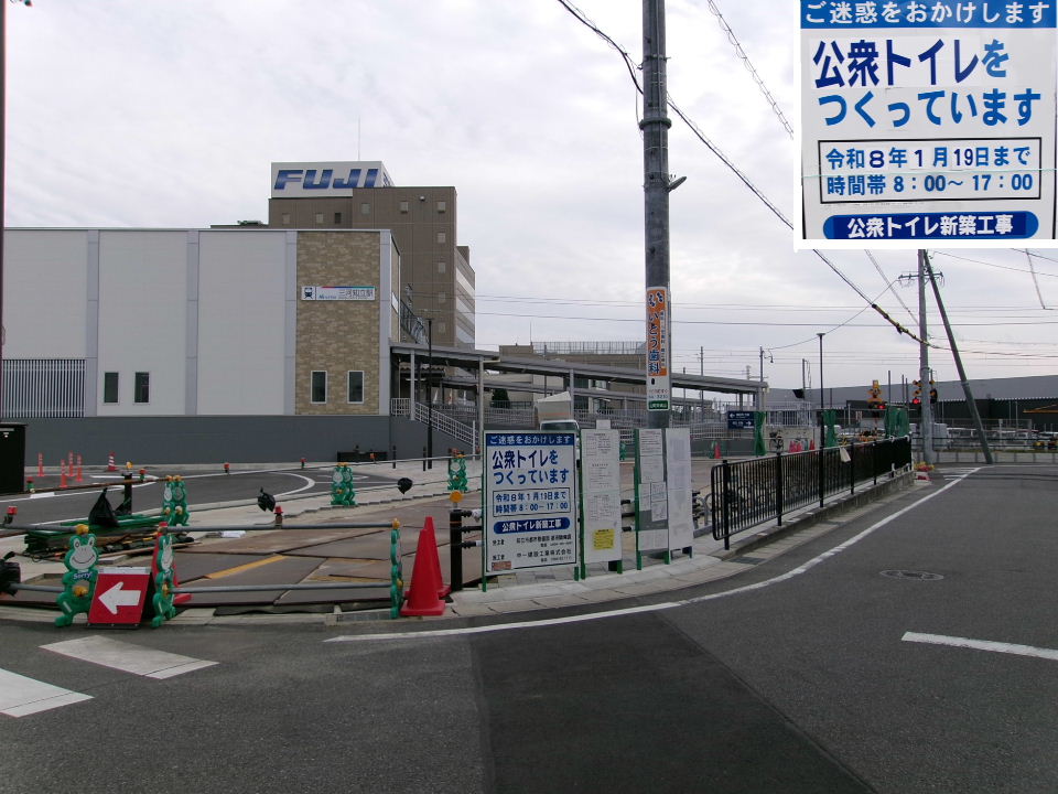2025年11月02日。駅前広場にトイレ建設中。 |