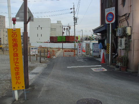 | 2016年11月13日。区画整理が始まって途切れてしまった路地。 | 2016年11月13日。殆んどこうなった。 |