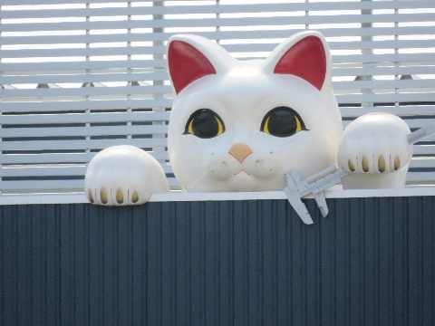 | 2019年03月31日。これ。やはり知立といえば招き猫。 | 2017年07月29日。じゃなくてこれと同じのがりんくう常滑にあるビル の屋上にもある。少し視線の角度が違うようだが同じ会社のようだ。 |