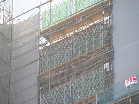 | 2018年09月11日。低層部見えるようになってきた。 | 2018年10月28日。外観大体出来。 |