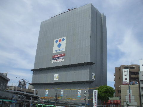 | 2024年06月29日。高さが大体同じになって駅の 方から屋上の看板も見えなくなった。眺望なしの 部屋の宿泊料は安くなるのか。 |