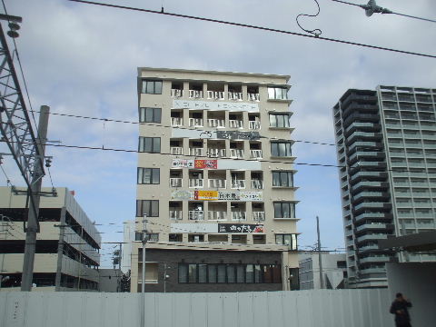 | 2018年03月30日。ただいま20階であと1階。 | 2018年03月30日。線路際にあるビルは少しテナントが増えている。 居酒屋ばかり。 |