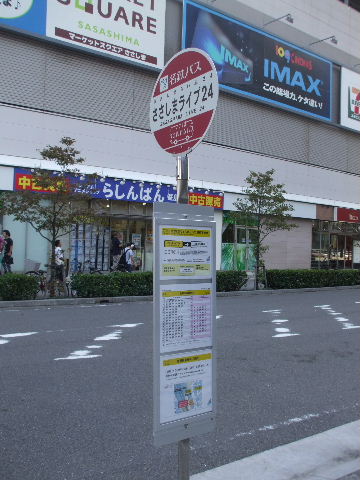 これらの4ルートの駅やバス停はささしまライブエリアの東側と西寄りの縁の部分にあるが今回初めて エリア内にバス停が出来た。