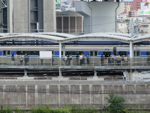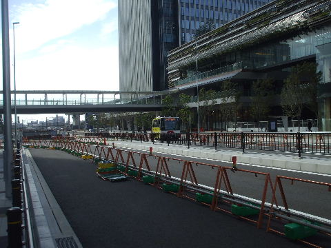 | 2017年09月23日。本数は多いがまだグロー バルゲートがオープンしてないので日昼は殆 んど乗っていないようだ。まだ殆んど知られて いないのでここももっと駅の出口近くとかに でかい看板をだすべし。 |
