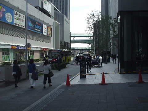 2017年09月23日。名古屋駅から来たバスはささしまライブ信号交 差点から入ってきて今のところ信号のないここを右折。 |