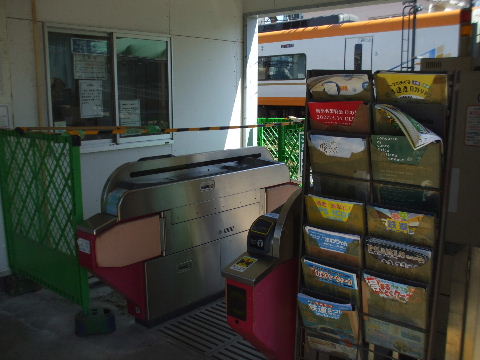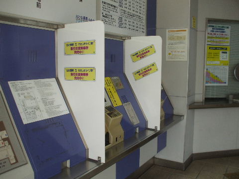 | 2019年09月15日。歩道橋が出来てから最寄り駅になった。 | 2019年09月15日。ささしまライブがほぼ完成してから乗降客が増え てきたのか一機だけだった自動改札機をもう一機増設し一挙倍増 工事中。ほとんど人のいない駅事務室を削ってスペースを確保した。 |