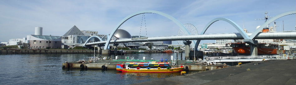 | 2017年10月08日。名古屋港の乗り場はポートビルの西側。奥に左、水族館、右、南極観測船。 |