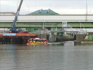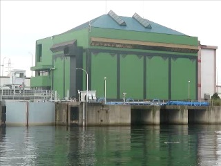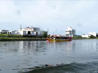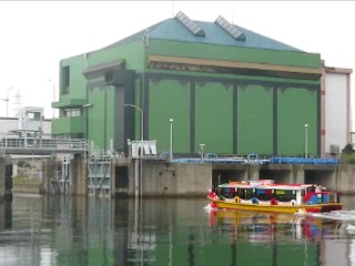 | 2017年10月08日。出航すると水族館を回り込んで中川運河に入っ て行く。 |