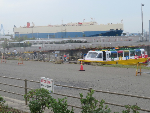 | 2017年10月14日。こちらは金城ふ頭。ささしまライブからの船がや って来る。 |