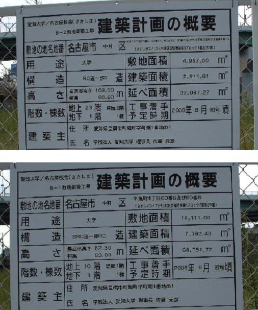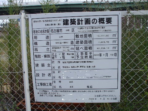 | 2009年9月21日。大学予定地に新しい計画看板が掲出された。11階建て一棟。