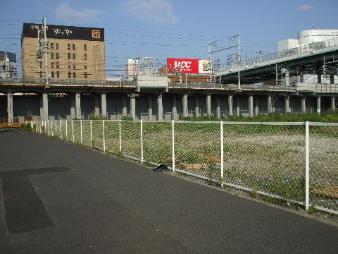 | 2009年2月1日。新幹線高架下に貨物駅名残の線路が僅かに残っている。ただ貨物駅のホームは新幹線と直角